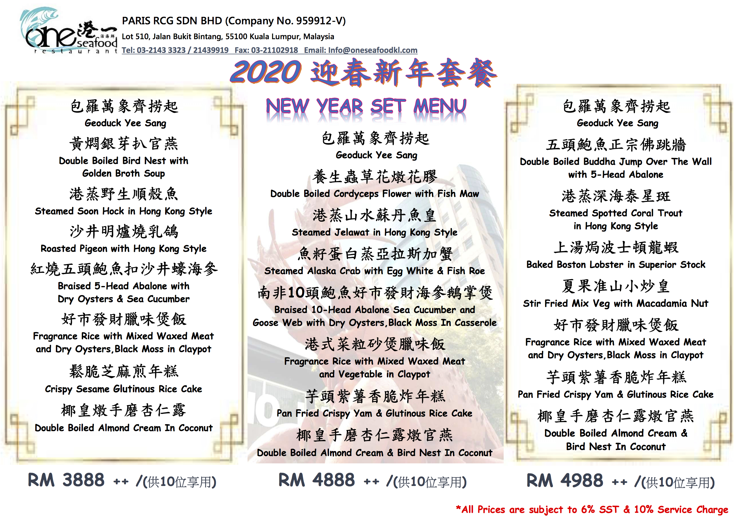 Chinese New Year 2020 Set Menu (RM3888,RM4888, RM4988)